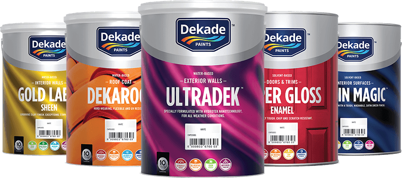 Manufactured using premium raw materials, quality forms the cornerstone of all our ranges, with Dekade’s flagship brands from our premium decorative coatings range, such as Gold Label Sheen, Gold Label Matt, Ultradek, Dekaroof, Dekatex, Dekalite (Masonry Paint), Satin Magic, acknowledged leaders in the local paint market.